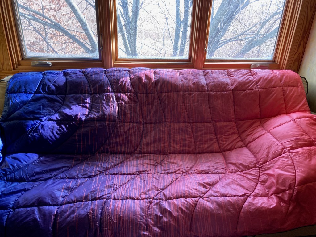 Then I came across these Puffy Blankets from Rumpl. They ticked all the boxes for what I was looking for, and they are so beautiful!! Best of all, the shell and insulation are made from 100% post-consumer recycled polyester. They are really easy to clean – just toss them in the washing machine – and they seem to hold up to cat claws really well.
