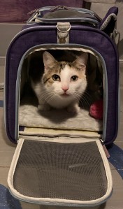 So, when the time came to take our little fussy princess Pearl in for her wellness exam, we tried the pop-out again. Pearl is another pet who was dumped nearby so understandably doesn’t enjoy car rides.