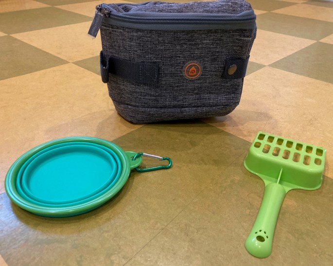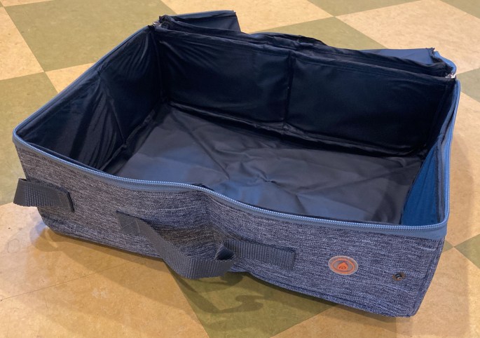 A person in one of the Facebook groups for pet travel recommended a portable litter box for traveling, and I was intrigued, as I’d never heard of such a thing before! I started poking around on Amazon (as one does) and found one that seemed promising, so I ordered it.