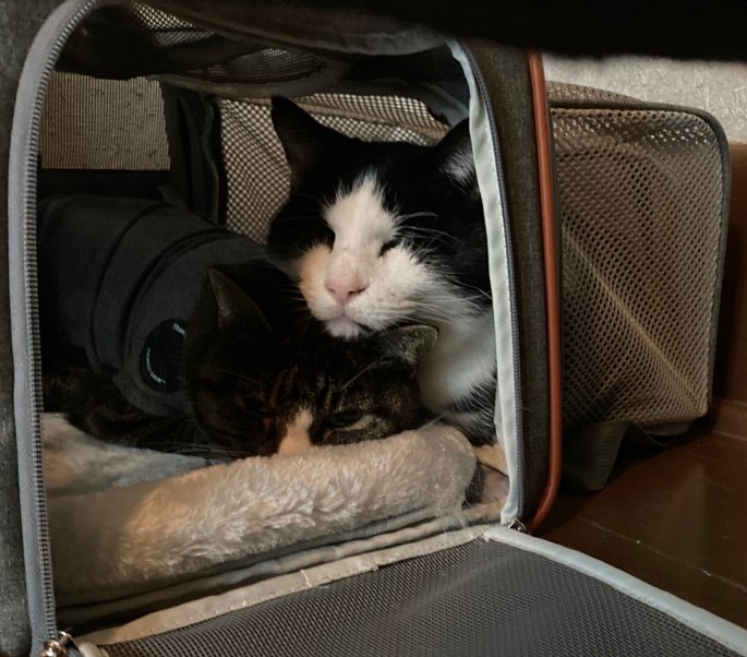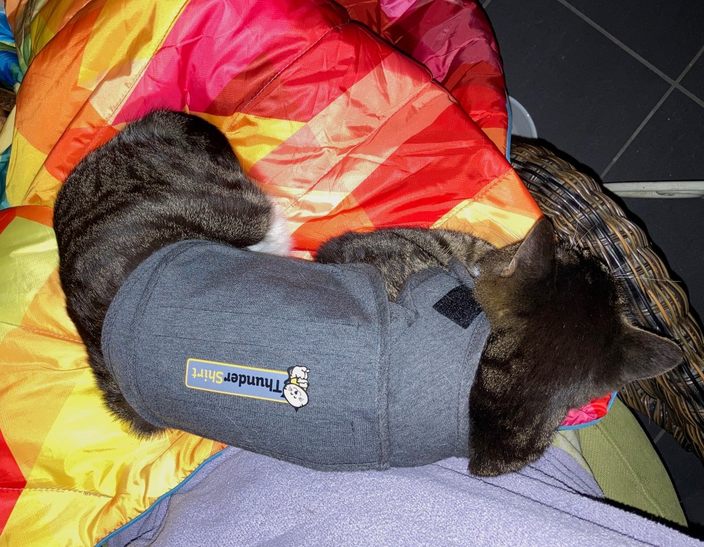 Given the successes we’ve had so far, I think putting the cats in their ThunderShirts for the trip to Portugal is going to be incredibly useful as a safe and effective calming tool. We’ll be continuing to try them out at all the upcoming vet visits! I think I’ll also try out their calming chews and see if those make a difference.